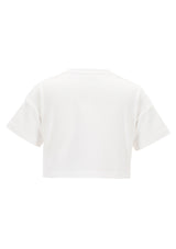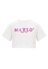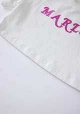 Meet the must-have piece for every young fashionista's wardrobe! The Abigail T-Shirt is a cropped white tee featuring our logo delicately embroidered in pink. Perfectly versatile, it pairs effortlessly with the Abigail Vegan Leather Skirt and the Abigail Fur Jacket for a chic and coordinated look.