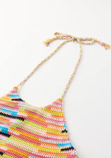 The Alia Crochet Top is a vibrant addition to your mini’s resort wardrobe. Designed in our exclusive multicolour crochet fabrication with a halter neckline, this playful piece is perfect for layering over swimwear or pairing with the matching Alia Crochet Shorts for a coordinated look.