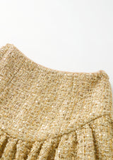 Complete her look with the Celina Tweed Mini Skirt. Designed to dazzle, this sparkling piece is perfect for holiday parties, confirmations, or elegant birthdays.