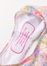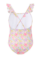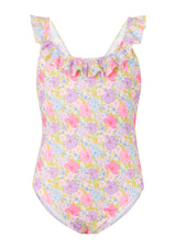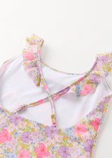 Charming and playful, the Charlotte One Piece is the perfect holiday swimsuit for carefree resort days. Crafted in our exclusive Marlo floral print, this timeless silhouette is elevated with delicate ruffle trims at the neckline and shoulders for a feminine finish. The adjustable cross-back straps ensure comfort and ease, making it ideal for both swimming and poolside lounging.