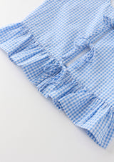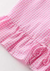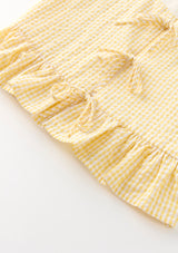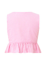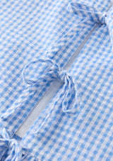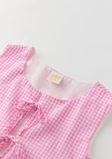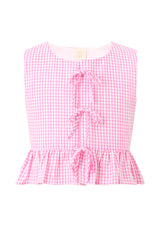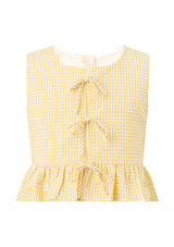 The Elara Top is a charming wardrobe staple, crafted in gingham with delicate tie-front bows and a peplum hem for a playful silhouette. Pair with the Elara Skirt or Shorts for the perfect matching set.