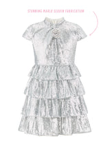 Shine bright this season in the Festive Sequin Dress. This dazzling dress features sparkling sequins that catch the light at every turn. Perfect for holiday parties and celebrations, this dress is sure to make your little one the star of the show.