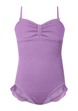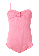 • Classic one-piece silhouette with ruching at the bust