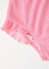 The Finola Full Piece is a timeless addition to any holiday swim wardrobe, crafted in textured fabrication for a modern yet classic look. With delicate ruching at the bust and sweet ruffle trims at the leg, this versatile one-piece blends playful detailing with everyday resort functionality. Adjustable straps ensure comfort for days spent swimming or lounging poolside. Style with the Molly Crochet Mini Skirt for the ultimate resort-ready pairing.