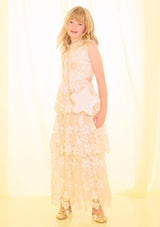 The Haley Embroidered Frill Maxi Dress is a romantic, elevated silhouette designed to make every occasion feel special. Featuring intricate floral embroidery and cascading tiered frills, this maxi dress brings soft texture and timeless elegance to her wardrobe.