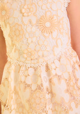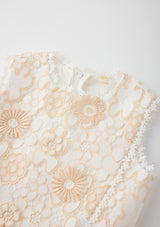 - Sleeveless bodice with scalloped edges