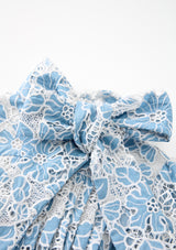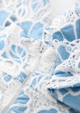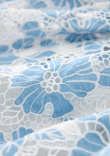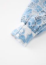 The Lori Embroidered Mini Dress pairs delicate floral detailing with a cool blue base. With bishop sleeves and a fitted bodice, it’s ideal for confirmation dresses Australia or school socials.