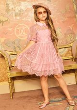Sweet and stylish, the Monroe Lace Mini Dress brings playful charm with its lace accents. A lovely option for birthday dresses or girls’ party gowns.