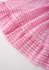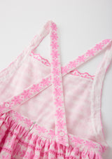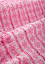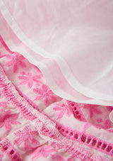 The Odessa Embroidered Maxi Dress is a whimsical statement style adorned with pink floral embroidery and cascading tiered layers. With its dreamy colour palette and flowing maxi silhouette, this dress is perfect for garden parties, celebrations, and special occasions.