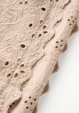 Chic and comfortable, the Otillie Embroidered Pants feature delicate floral embroidery and a relaxed fit. Style with the matching top for a polished ensemble that works for family gatherings, confirmations, or festive events.
