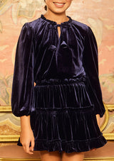 The Symphony Velvet Mini Dress brings plush texture and subtle shine to any celebration. A sophisticated pick for girls’ party gowns and festive evenings.