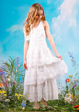 Elevate their style with the Aurora Embroidered Maxi Dress. With its embroidered floral fabrication and ruffle details, it's perfect for special occasions or simply making a fashion statement.