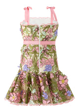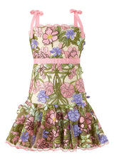 The Bonnie Embroidered Mini Dress is a magical statement style bursting with colour and texture. Featuring vibrant floral embroidery, playful frill detailing, and a silhouette made for twirling, this dress is perfect for birthdays, celebrations, and unforgettable moments.