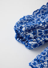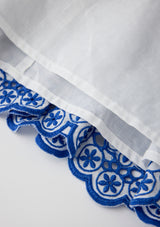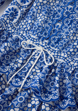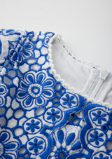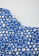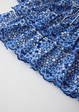 The Skyla Sleeve Embroidered Mini Dress in Royal Blue is a striking, elevated piece that showcases bold florals and romantic detailing. With puff sleeves, scalloped trims, and a tiered skirt, this dress delivers movement, texture, and charm for any special occasion.