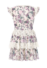 The Starlet Mini Dress twinkles with subtle shimmer and floral detail, making it a magical choice for holiday parties and festive celebrations. A whimsical take on girls’ party gowns.