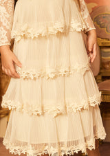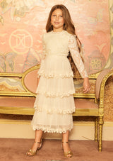 Romantic and refined, the Peggy Lace Midi Dress brings vintage elegance to modern celebrations. With its delicate lace and dreamy crème hue, it’s a beautiful option for first communion dress girls, christenings, or birthdays — a timeless formal dress for girls.