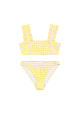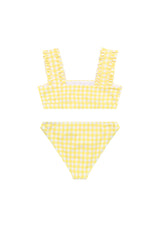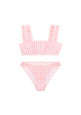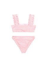 The Pretty Gingham Bikini is a two-piece swimsuit perfect for summer days. This garment features ruffled straps, a fun design full of color and a perfect fit that feels very comfortable. For sweetness and charm, look no further than this go-to staple. Fully-lined, Ultra-soft high quality fabric.