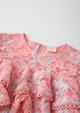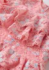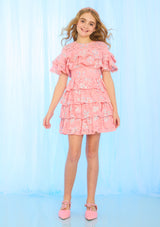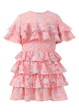 The Allyson Frill Mini Dress is a statement piece full of movement, texture, and dreamy charm. Designed with cascading frill layers and floral lace embroidery, this style is perfect for special occasions where she wants to feel extra magical.