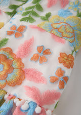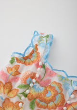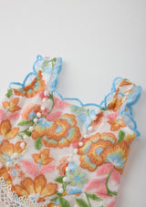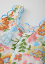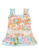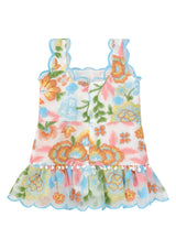 The Baby Bianca Embroidered Mini Dress is a charming, sunshine-ready silhouette designed for little ones. With soft pastel florals, scalloped trims, and a sweetly gathered skirt, this adorable piece brings playful elegance to birthdays, family celebrations, and warm-weather adventures.