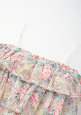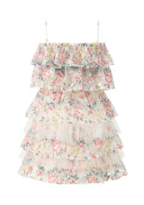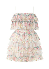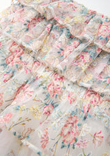 The Reign Frill Embroidered Mini Dress is a dreamy, layered silhouette adorned with delicate floral embroidery. Featuring tiered ruffles, a soft off-shoulder neckline, and adjustable straps, this dress blends elegance with playful charm — perfect for parties, photos, and special events.