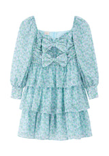 Dress them in elegance with the Phoebe Dress. Featuring long bishop sleeves, tiered ruffle skirt, and bow detail, this mini dress is perfect for any special occasion.