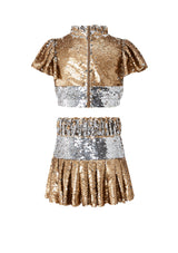 Let your little one shine in the Sparkle Top! This crop top is perfect for any party, with its sequinned design catching the light at every angle. It's designed to be paired with the Sparkle Skirt for a complete look that will make your mini feel like a star.