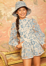 The Lori Embroidered Bucket Hat completes the look with playful style. Match it with the Lori set or wear it with girls’ party dresses for a fun accessory twist.