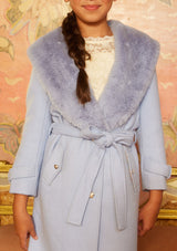 Wrap her in cozy elegance with the Adeline Fur Coat, a winter wonderland must-have. With its powder blue hue and luxe faux fur texture, this coat layers beautifully over formal dresses for girls and flower girl dresses, adding warmth and wow-factor to any festive look. A timeless piece of style and comfort.