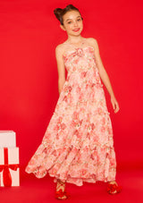 Step into a dreamlike holiday moment with the Amelia Maxi Dress. Crafted from a soft floral fabrication, this flowing silhouette features a tiered skirt and delicate rosette detail - perfect for festive celebrations, family portraits, or garden gatherings.