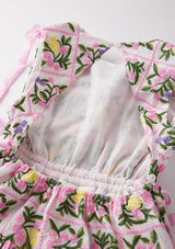Let your child shine in our Millie Embroidered Maxi Dress. This sleeveless maxi dress features delicate ribbon detailing and is adorned with an embroidered floral fabrication that's both elegant and stylish. The open back detailing adds a touch of flair, making it the perfect choice for special occasions and memorable moments.