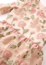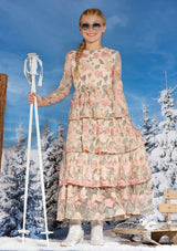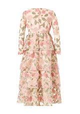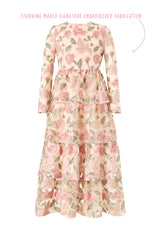 The Ella Floral Maxi Dress showcases long sleeves, a tiered frill skirt, and Marlo exclusive embroidered floral fabric. Ideal for creating an elegant and stylish look, it's perfect for any special day.