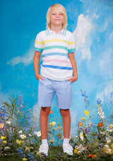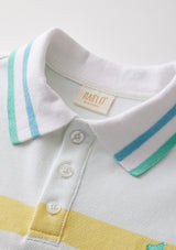 Elevate your little gentleman's style with our Ashton Shirt. Crafted with pastel stripes and designed for comfort, this polo shirt adds a touch of sophistication to any ensemble. Let him stand out with timeless charm.
