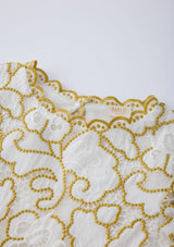 The Ella Embroidered Dress features Marlo exclusive floral embroidery, long sleeves, and open back detailing. Perfect for any special occasion, this dress combines sophistication and style.