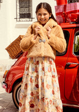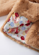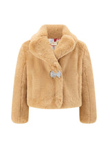 Wrap up warm in the Frosty Fur Jacket, a soft and cozy piece perfect for layering over holiday outfits. This beige faux fur jacket adds a luxurious touch to any look while keeping your little one warm and stylish all season long.