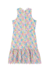 Make a statement with our Giselle Embroidered Dress. This sleeveless mini dress in embroidered floral fabrication radiates elegance and charm.