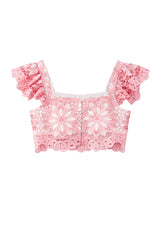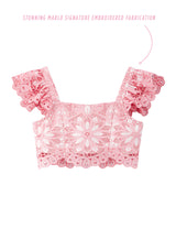 Elevate their style with our Kiera Embroidered Top. This embroidered floral crop top with tie-up straps can be worn on its own or paired with the matching Kiera Embroidered Skirt for a chic ensemble.