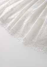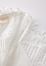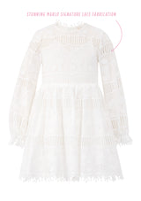 The Natalia Lace Dress is an elegant and sweet ivory mini dress with long sleeves, perfect for flower girls, graduations, or any special event. This dress offers a timeless and sophisticated look.