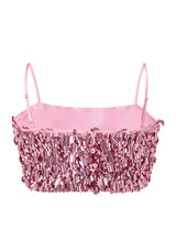 The Davina Sequin Top is a statement piece designed to sparkle with every movement. Crafted in shimmering Magenta Rose sequins, this top blends playful glamour with a polished silhouette, making it perfect for parties, celebrations, and special occasions. Style it with the matching Davina Sequin Mini Skirt for a standout coordinated look, or pair it back with simple separates for effortless shine.