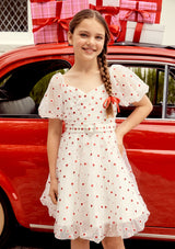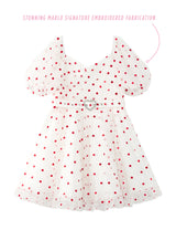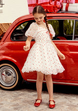 Step into a magical world with the Enchanted Embroidered Dress. This ivory dress features delicate embroidered daisies, matching detachable belt with diamante heart-shaped buckle and a twirl-worthy silhouette that’s perfect for holiday celebrations.